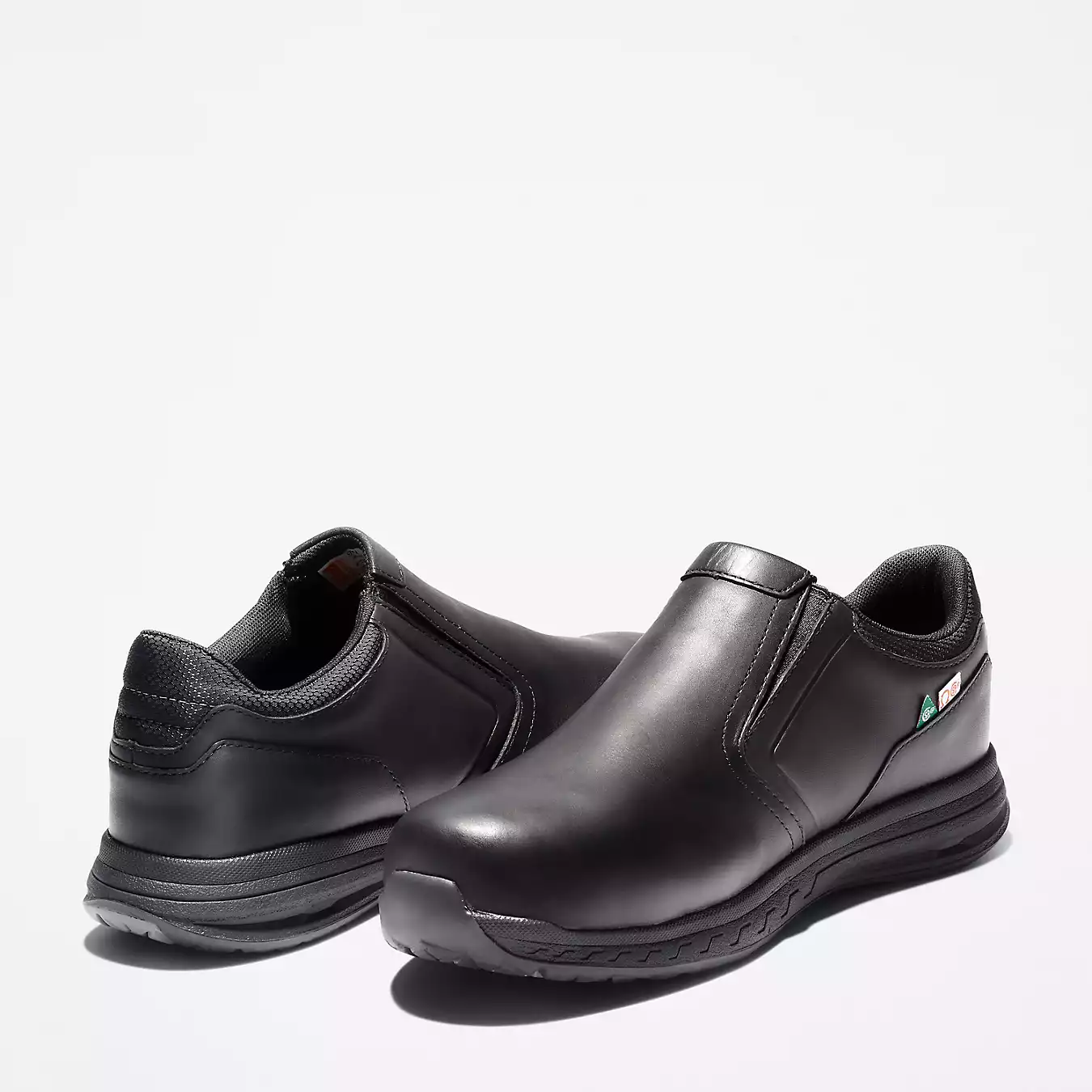 Ne vous laissez pas tromper par l’allure confortable de notre slip-on Drivetrain de calibre industriel. Offrant un confort léger et alliant diverses technologies, cette chaussure de travail sans métal et antirayure est l’une des plus robustes de notre collection Timberland PRO®. La tige en cuir pleine fleur Timberland® de première qualité est suffisamment résistante pour ne rien craindre des journées exténuantes sur le chantier. Cette chaussure est de plus dotée d’un embout de sécurité en composite, d’une protection contre les décharges électriques et d’une assise plantaire à technologie antifatigue pour un amortissement des chocs et un retour d’énergie en tout temps. La doublure respirante et qui évacue l’humidité est faite de tissu ReBOTL™ contenant au moins 50 % de plastique recyclé et comporte un traitement antimicrobien contrôlant les odeurs. De plus, la semelle d’usure légère toutes saisons en TPU offre une excellente adhérence ainsi qu’une résistance à la chaleur, à l’huile, au glissement et à l’abrasion.