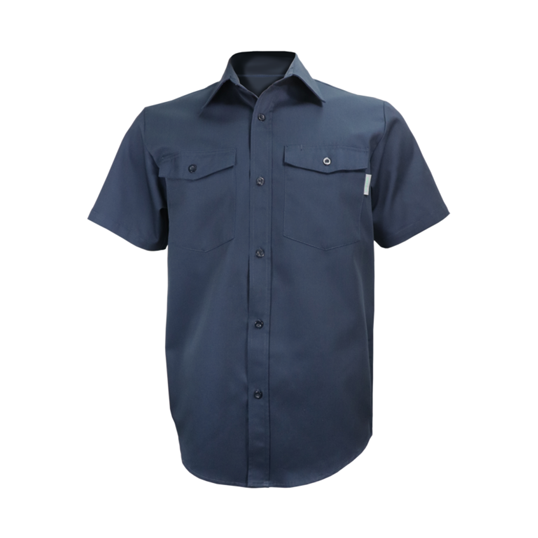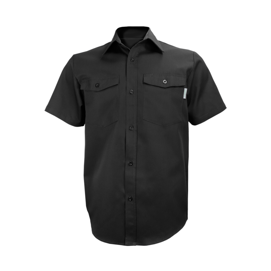 – Coupe droite – Manches courtes – Twill 5,5 oz, 65% polyester, 35% coton – Boutons en plastique – 2 poches à rabat