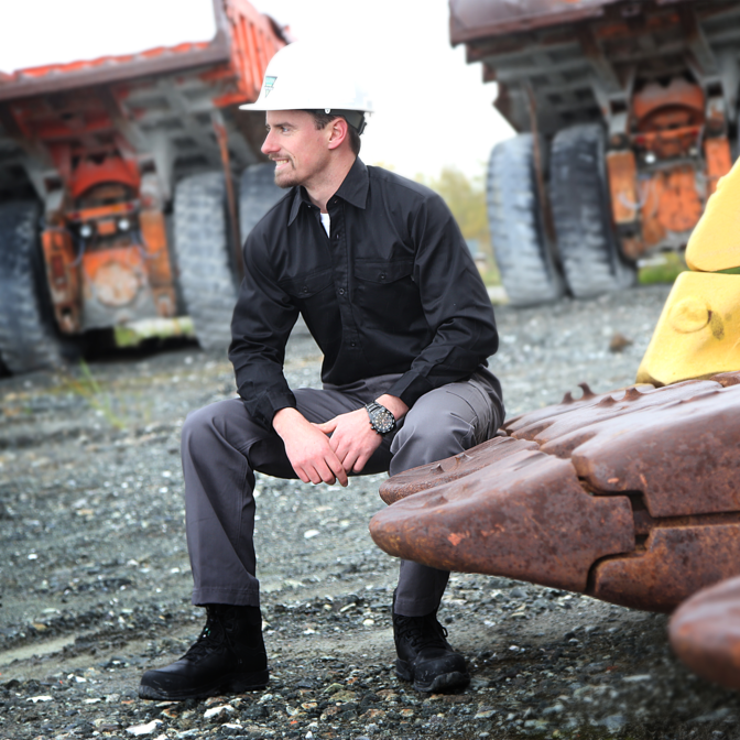 – Coupe droite – Manches longues – Twill 5,5 oz, 65% polyester, 35% coton – Division crayon sur poche – Boutons en plastique – 2 poches à rabat
