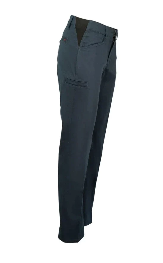 Tissu élastique idéal en position assise – Produit traité contre l’eau – Tissu avec traitement contre les taches – Pressage permanent – Poches profondes avec le fond doublé et renforcé – Boutonnière de métal invisible pour usage intensif