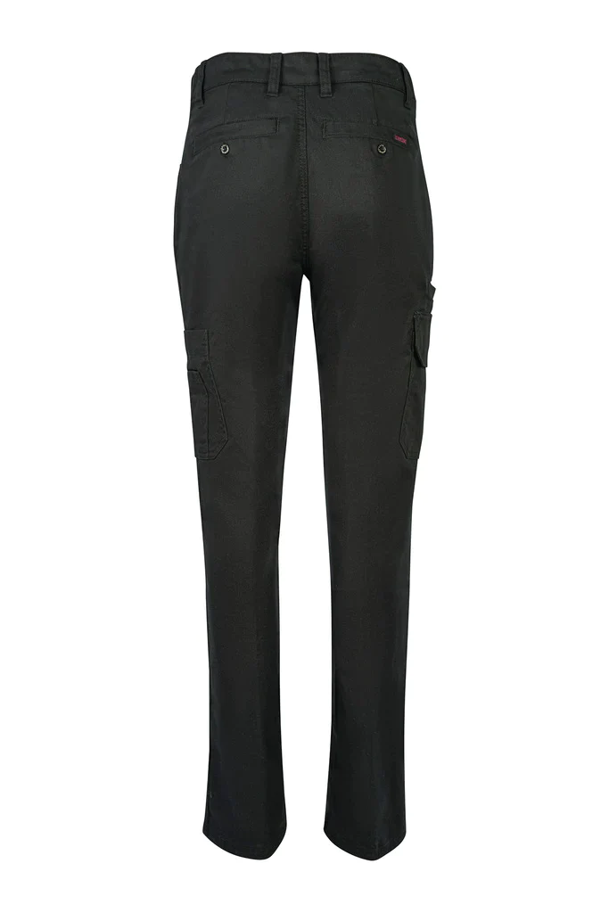 Sergé de coton 8.5oz – 65% polyester- 33% coton – 2% spandex – Taille élastique avec 66% viscose, 29% nylon et 5% spandex – Ganses larges – Fermeture à glissière en laiton – 1 poche profonde cargo avec rabat et bouton caché – 2 poches arrières avec rabat et bouton caché – Coutures avec fils de polyester ultra résistant – Entre-jambes surpiqués 10 points au pouce